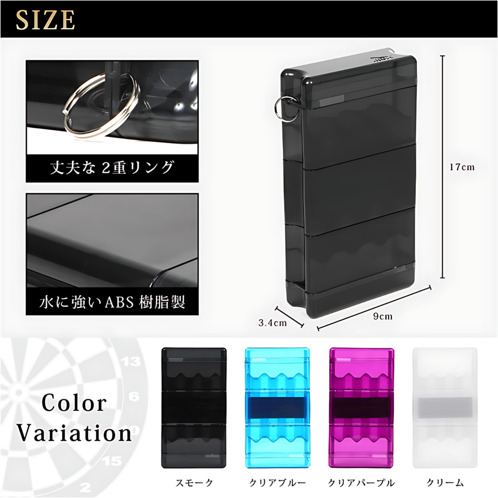 - 尺寸:約170mm(高)×94mm(寬)×37mm(深),可收納最長160mm飛鏢。