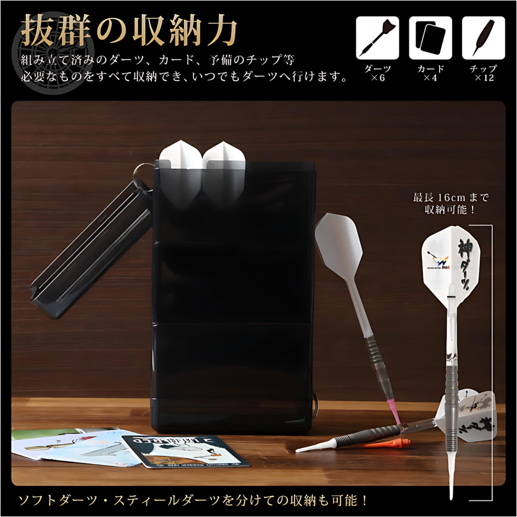 - 小巧卻大容量:雖然體積小巧,但能高效收納2組飛鏢、4張卡片及12支尖頭,適合需要多功能空間的玩家。