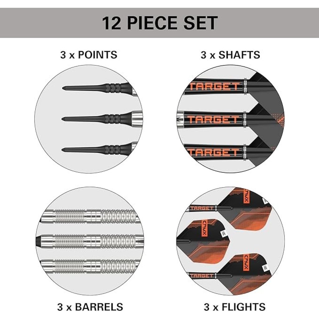 Swiss Point System: This patented design allows for quick changes to the dart tip length and style, including three 26mm tips and a free installation tool.