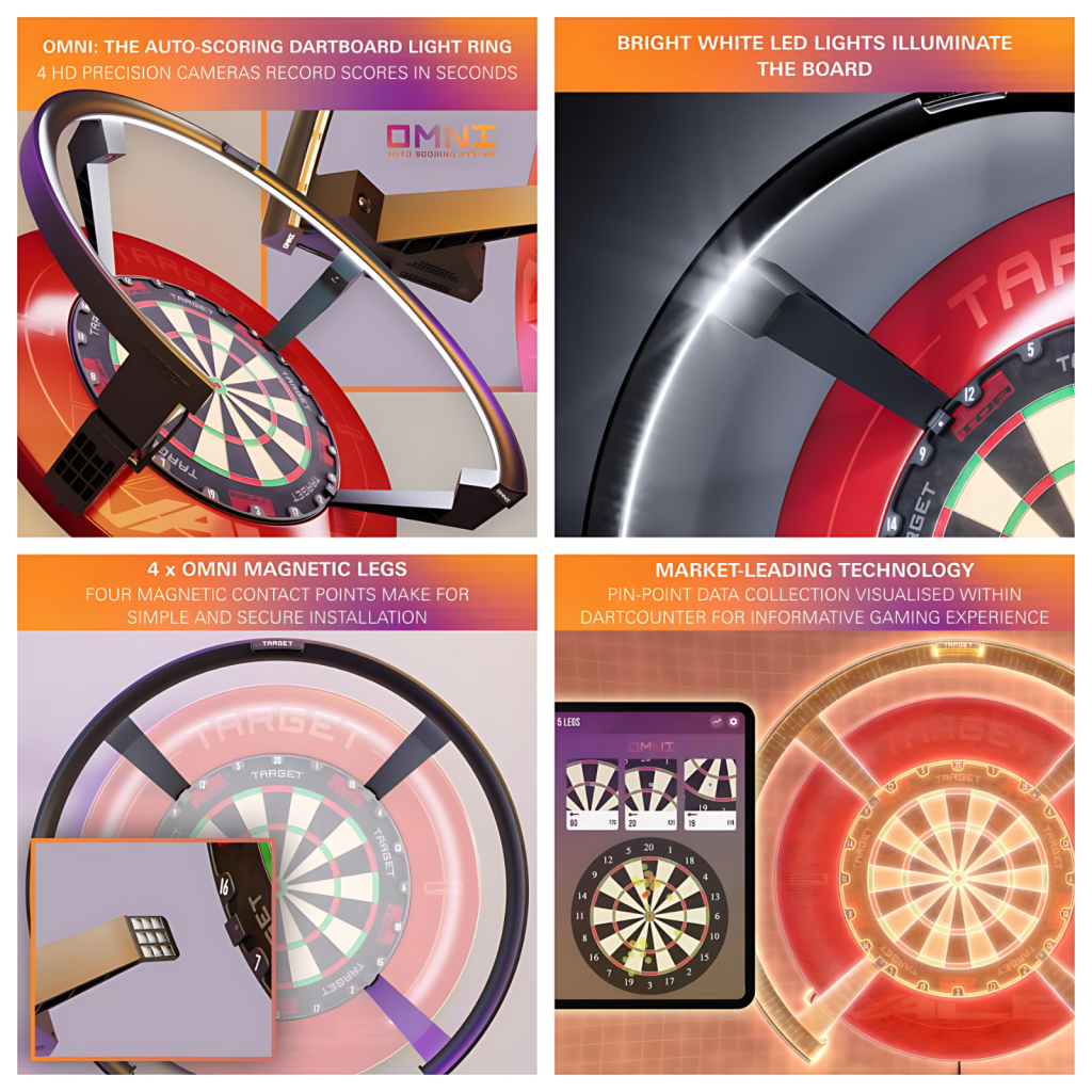 OMNI 是TARGET推出的一款革命性飛鏢自動計分系統,搭載先進技術,將飛鏢體驗提升至新高度。以下是其主要特點: