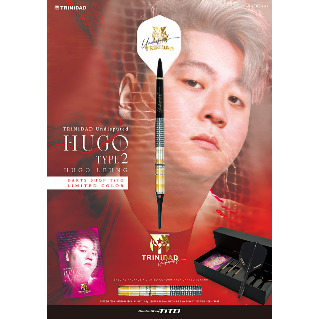 TRiNiDAD Undisputed HUGO TYPE 2 是為亞洲頂尖選手梁浩賢(Hugo Leung)設計的第二款簽名飛鏢,梁曾參與 PDC 世界飛鏢錦標賽、PDC 世界盃飛鏢賽及 Super Darts 2024 等國際賽事。