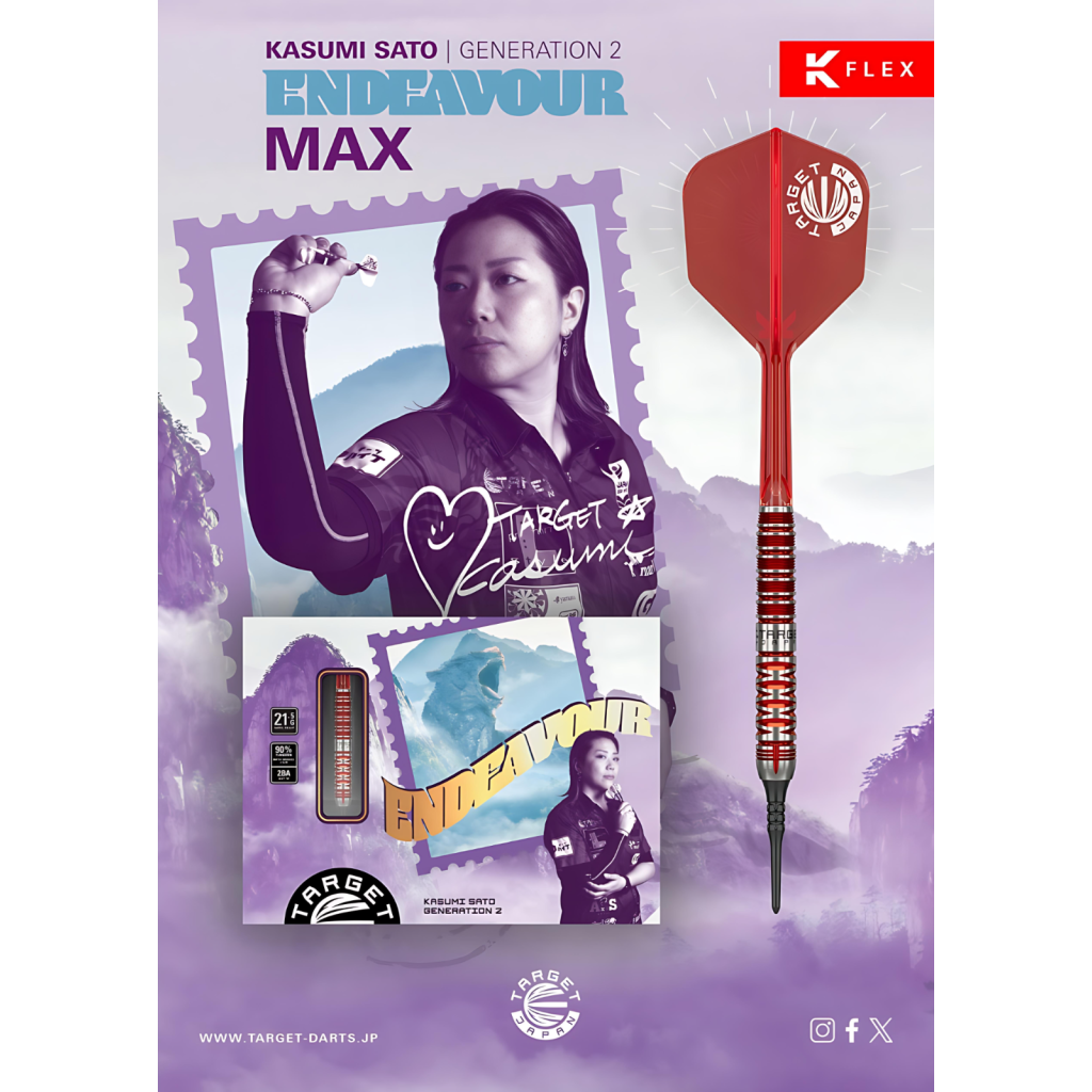 The ENDEAVOUR G2 MAX is the latest addition to Target Japan's ENDEAVOUR series, co-designed with Japanese professional darts player Kasumi Sato.