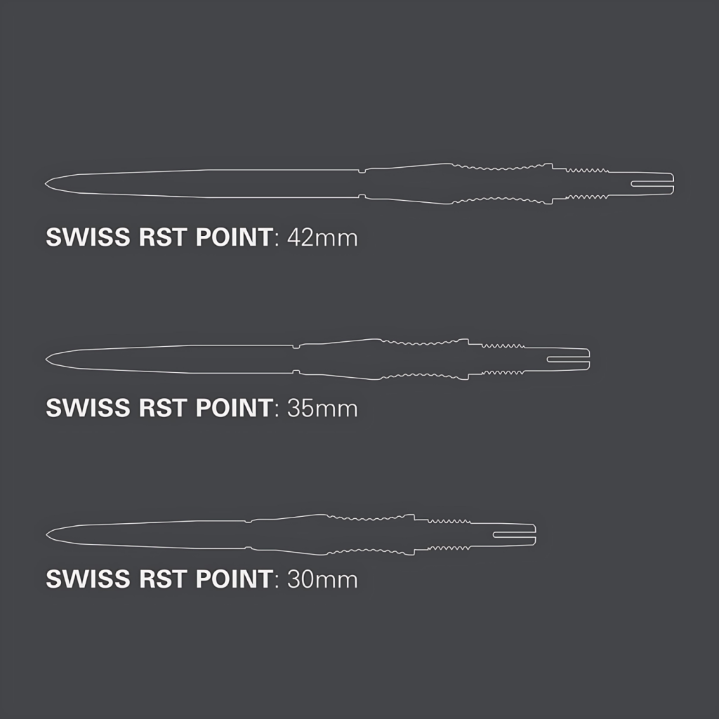 SIGNATURE SWISS POINT RST融合了專利SWISS POINT技術與暢銷的 Storm 輪廓,與鏢筒無縫整合,實現一體化的外觀與手感。