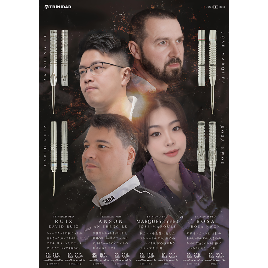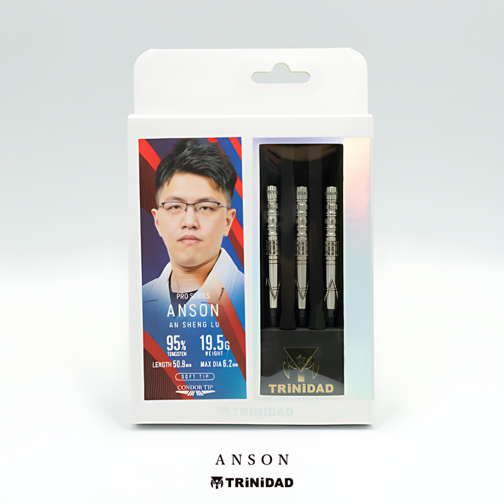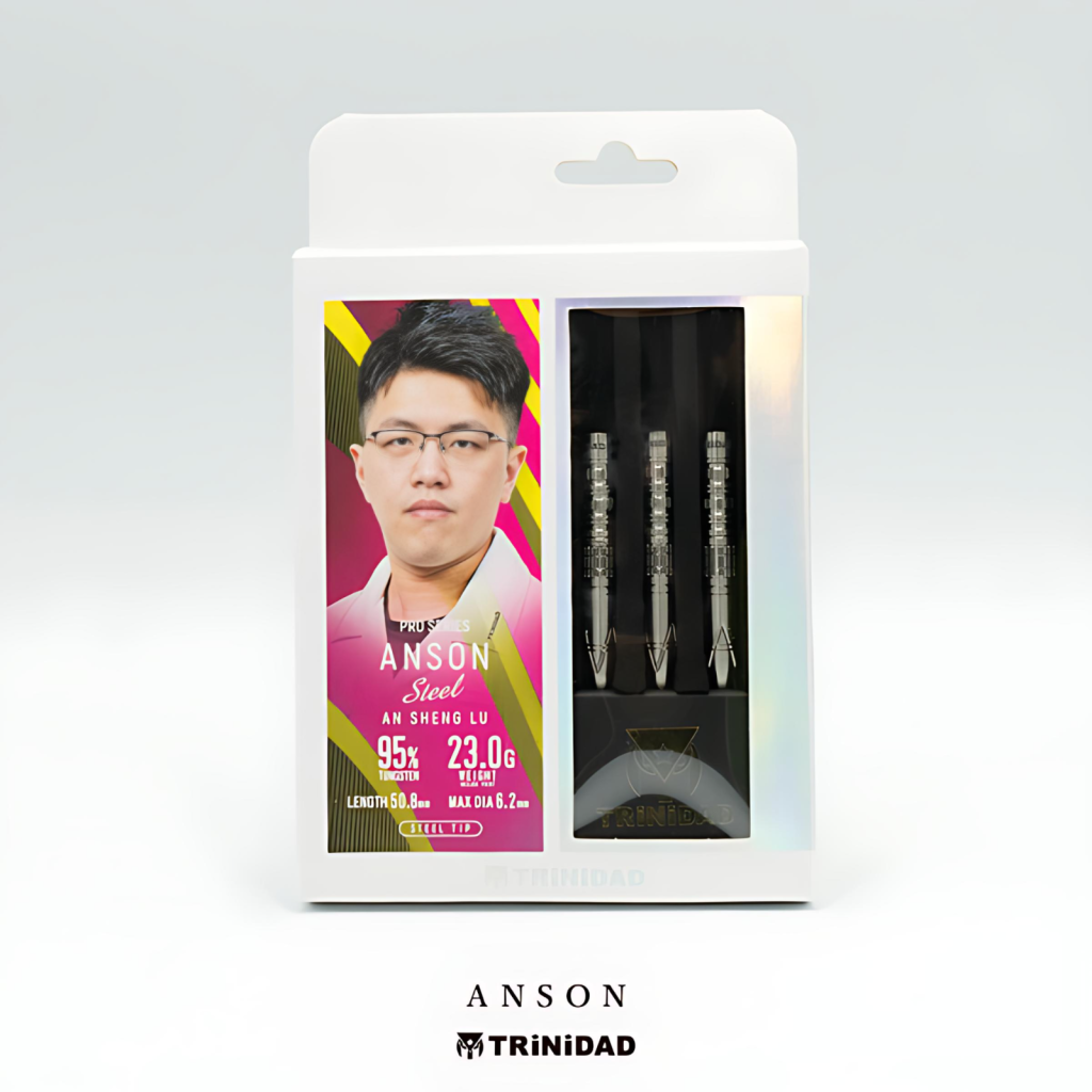 【TRiNiDAD PRO】ANSON 是 TRiNiDAD PRO 系列的選手款飛鏢,由台灣職業飛鏢選手 呂安昇 (An Sheng Lu) 合作設計。