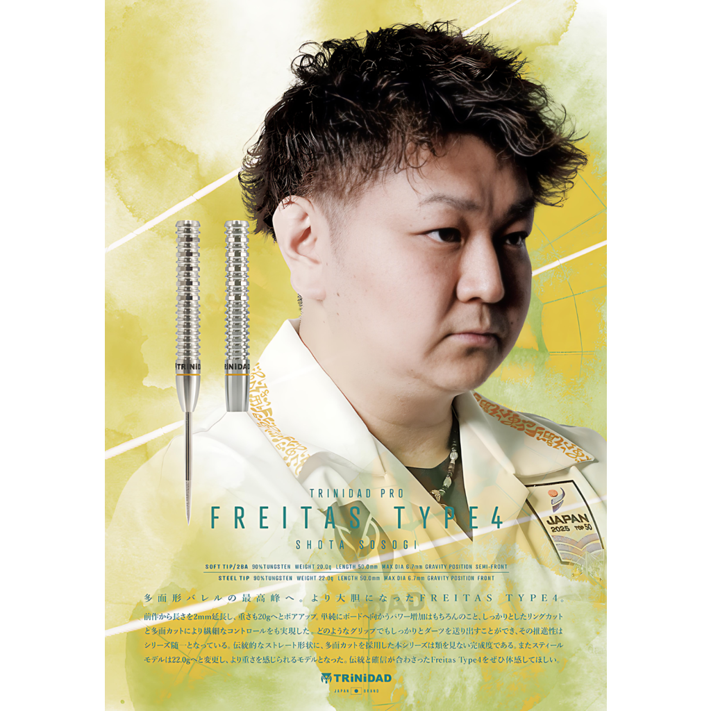 【TRiNiDAD PRO】FREITAS Type 4 是 TRiNiDAD FREITAS 系列的最新款軟鏢鏢筒,由日本職業飛鏢選手淋翔太合作設計。