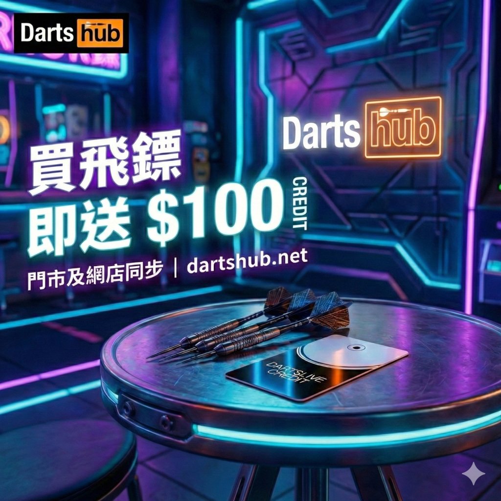 選購任何一套飛鏢,即時送1張$100 DARTSLIVE CREDIT(門市及網店同步進行)