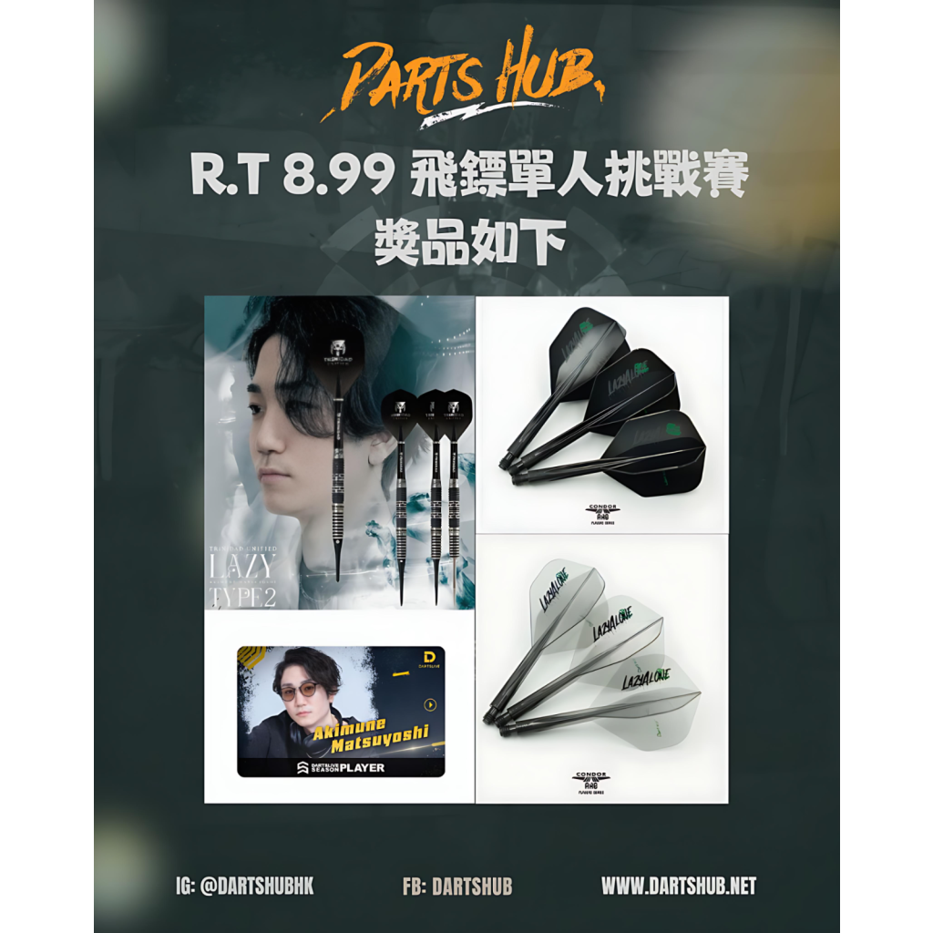想挑戰自己、贏走 TRINIDAD LAZY 2 松吉輝宗選手款飛鏢一套 做冠軍?定係想拎 CONDOR AXE LAZYALONE 飛鏢翼 做四強獎品?