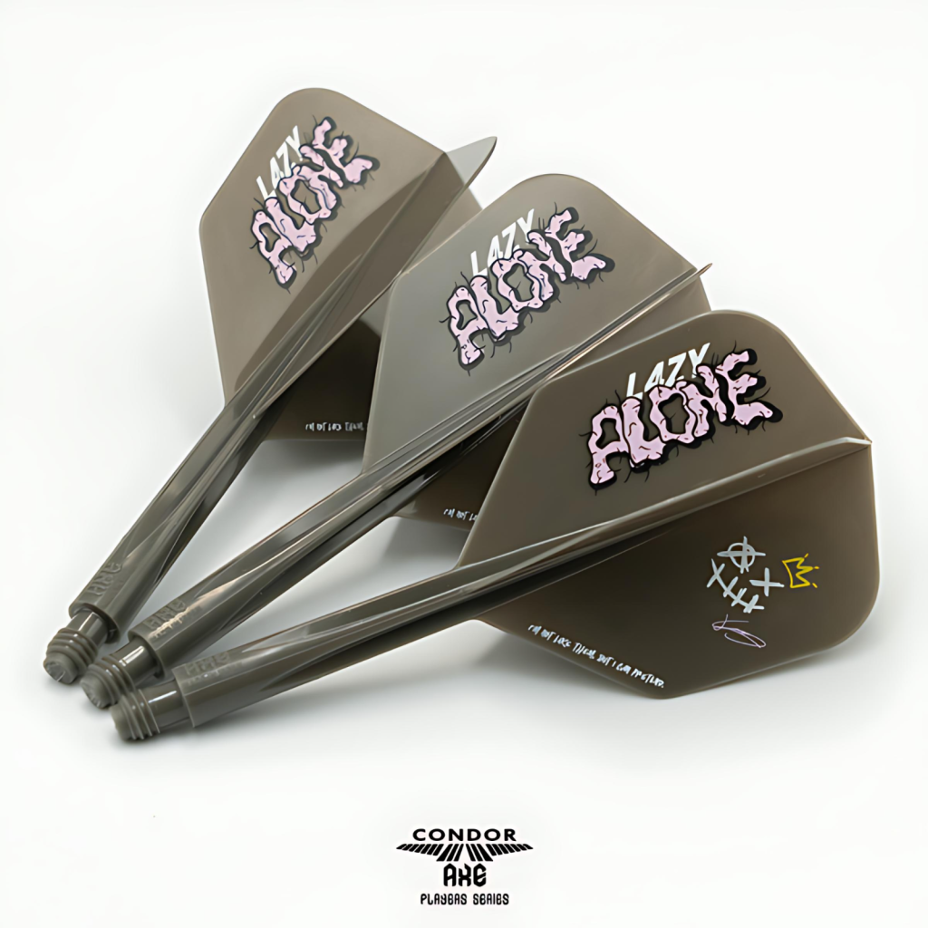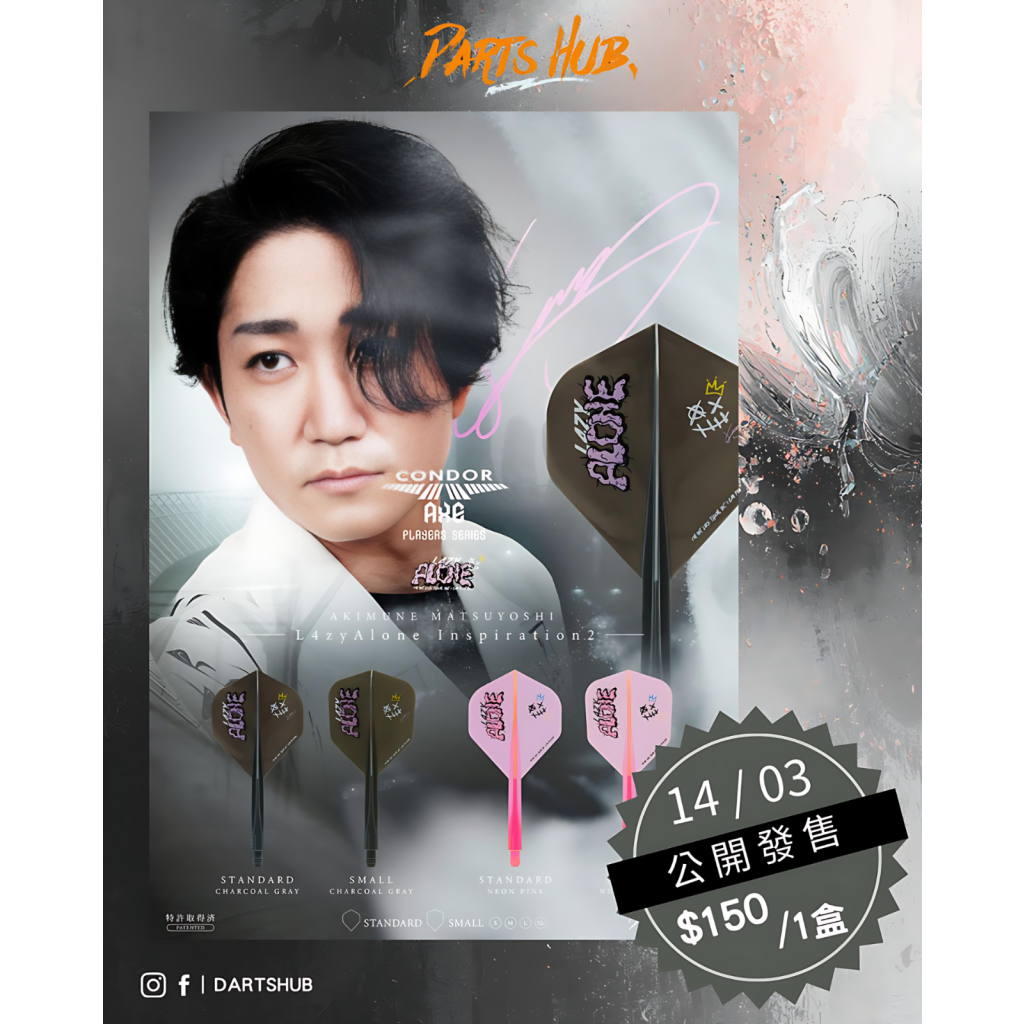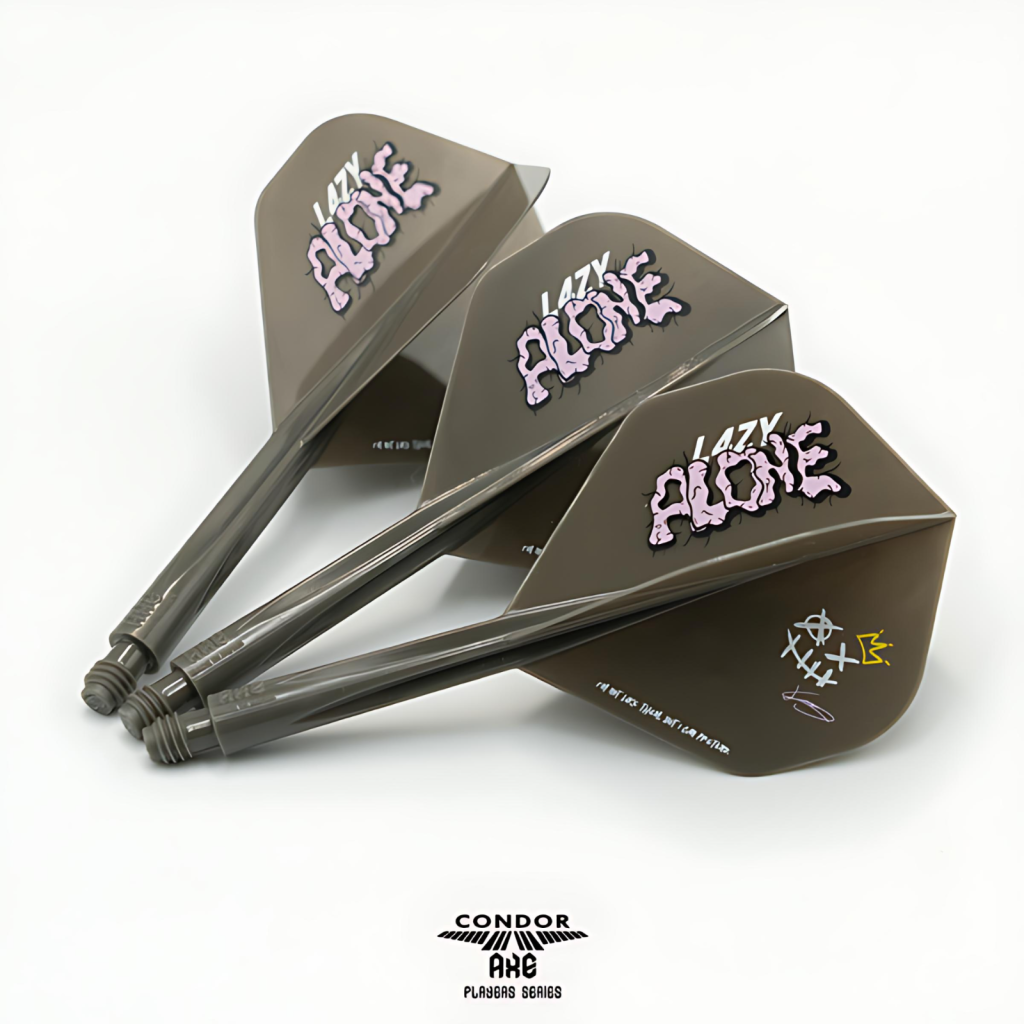 CONDOR AXE L4zyAlone2 延續街頭塗鴉「L4zyAlone」設計,超薄0.4mm高彈性樹脂翼片始終保持90°完美角度,軸桿更硬質耐用,S/M/L/XL四長度選擇,重量僅1.60g,帶來全新瞄準感與極低彈出率,2026年3月14日限定發售,巡迴賽必備神翼!